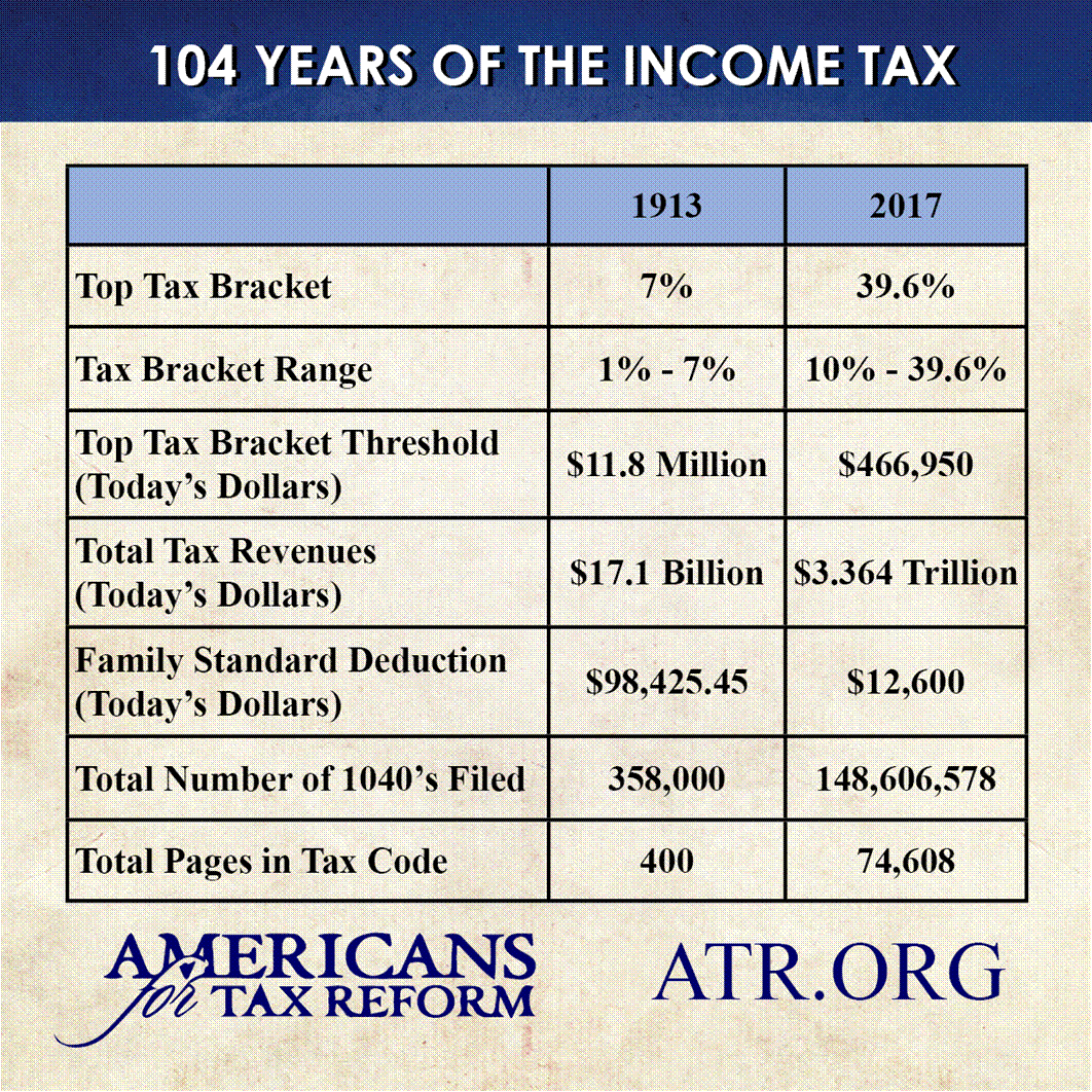 - In 1913 the top marginal income tax bracket was 7% — today it is 39.6%.