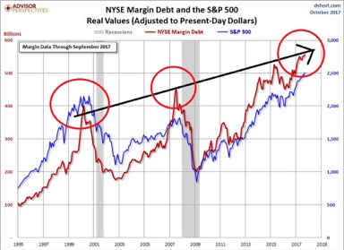 Quick Summary: Margin debt is much higher than at previous market tops. Peaks in margin debt often match market tops. Stock market risk is high.