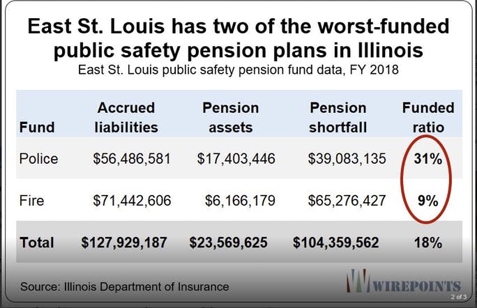 Wirepoint reports Third domino falls: Illinois Comptroller set to confiscate East St. Louis revenues to pay for city’s firefighter pensions.