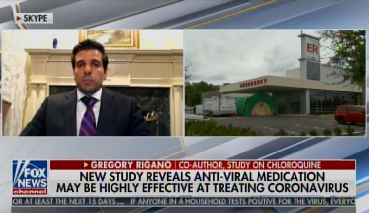 On @TuckerCarlson Tonight, Gregory Rigano, @RiganoESQ, a Stanford Univ. School of Medicine advisor announced a 100% cure rate in a controlled study done in France of 40 people with the #ChinaCoronaVirus with a malaria drug called #hydroxychloroquine. pic.twitter.com/m78oMhwxdi