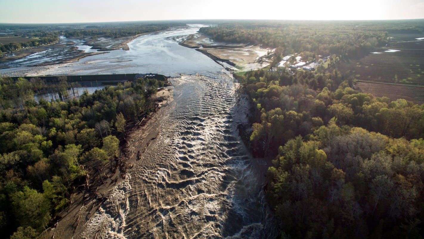 Sanford and Wixom Flood 2020 – Drone – Dam Collapse