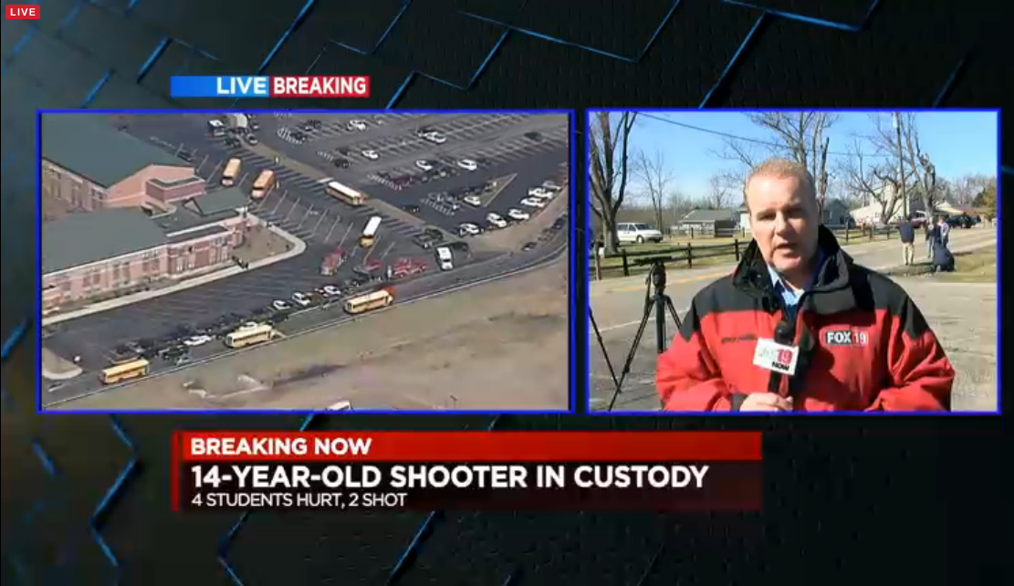 A gunman burst into a the lunch room of an Ohio high school Monday morning and opened fire, wounding four students before officials caught him and put him in custody, investigators confirmed.