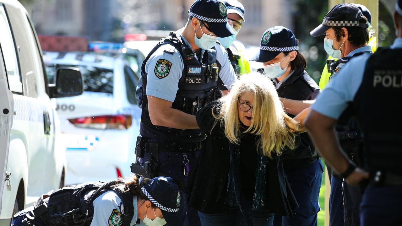 Police arrest members of the public during a protest at Government House in Sydney. Picture: NCA NewsWire/ Gaye Gerard